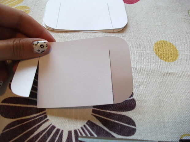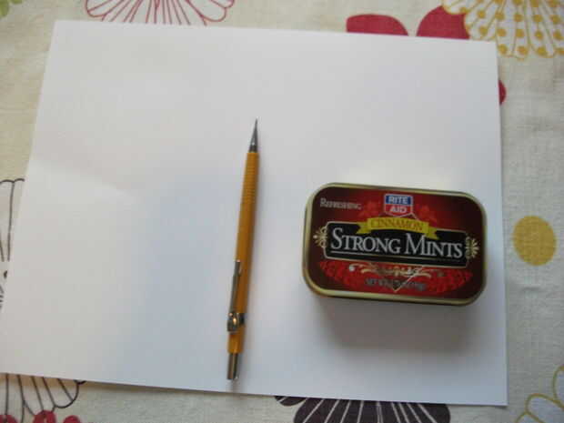Tome un pedazo de cartulina blanca y traza el perímetro de la lata de la menta en ella. Recortar esta forma. Usted puede hacer tantas de estas piezas como quieras, serán las secciones de fondo.