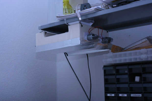 - Uniformidad de la iluminación en el plano de la exposición entera. Suponga que desea exponer una tabla muy grande, por ejemplo A4 o tamaño carta. Desea tener la misma cantidad de energía sobre todo el tablero, sin manchas oscuras o calientes. Para esto, la fuente de energía tiene que tener una cierta distancia desde el plano de exposición y necesita una matriz muy apretada de fuentes de UV (como UV-LED, que puede ser bastante caro), o un diseño reflector eficaz de las fuentes de UV que tiene a mano, que es lo que he venido para arriba con.