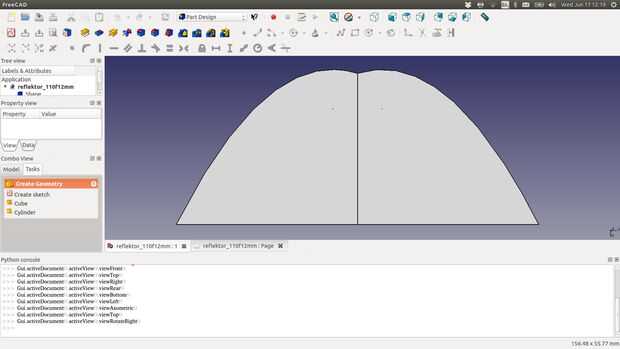 Tan nuestro y en x = 47.5 es 47. Ahora, todo lo que tenemos que hacer es trazar dos de estas parábolas y se les superponen 15mm aparte. Hay varias formas de hacerlo. He utilizado freeCAD, que probablemente no es la mejor manera de hacerlo, así que no entraré en él.