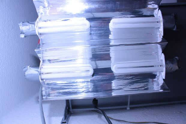 Ahora finalmente puede instalar las lámparas en las luminarias. Así es, que instalación las lámparas antes de que pegue los accesorios al reflector. Esto es porque es mucho más fácil para ajustar las luces para estar en el foco del reflector, que sin las lámparas instaladas.