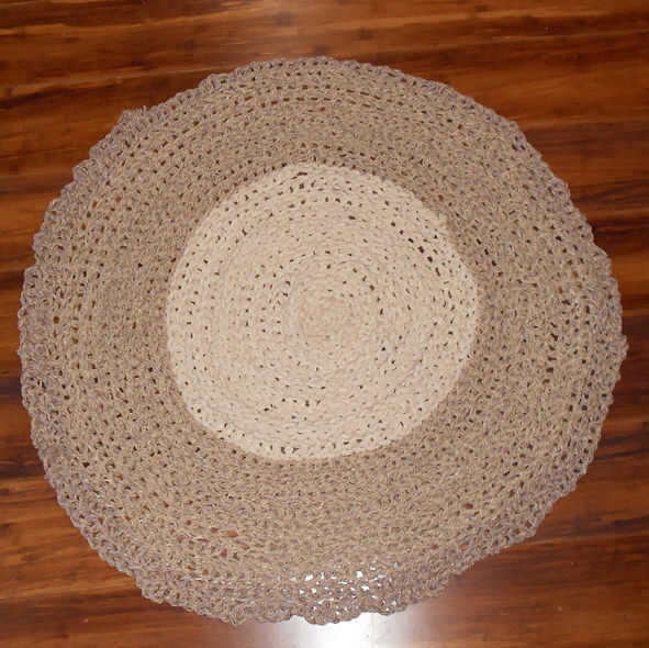 Aquí es lo que parece la alfombra de la cadena de algodón acabado.  Medir casi un metro de diámetro y es el tamaño perfecto para mi cuarto de baño.  Puede hacer tu alfombra como grande o tan pequeño como quieras.  Encontrarás más imágenes en la página de inicio-Dzine.co.za - por favor pop en visitar algún tiempo.