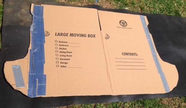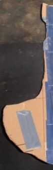Lo primero que hice fue cortar un lado de la caja para abrirla plana. Hice una pieza larga delgada de cartón que tenía costumbre de corte de la rueda bien y otras partes, así que finalmente fue directamente a un lado y encajaría en el contorno del tronco al otro lado. Tuve suerte, que ambos lados del coche eran simétricas, por lo que podría utilizar esta franja como una plantilla para el otro lado. Si el otro lado era un contorno diferente, hubiera tenido que cortar otra tira y haciendo cortes hasta que encajen. Desde su cartulina, cualquier error o si necesita utilizar más de una pieza, siempre puede usar la cinta de pato para asegurarlos. Una vez que tengas ambos lados hechos, pone en su lugar y ahora mide la distancia entre ellos, en la parte superior e inferior. Ahora corte un trozo de cartón a estas dimensiones. Ahora debe tener tres piezas de cartón que deben cubrir el tronco / zona de la portilla. Ahora pato cinta estas piezas. Ahora tiene la plantilla completa!