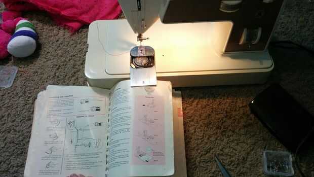 Desprecio pins para los patrones, pero para el componente de costura (especialmente con material de nylon inestable de fuzzy), los pernos son una necesidad. Prender todo lo que se supone que van al exterior. Si usted no puede descifrarlo, pellizque las costuras en sus manos en el interior hasta el exterior para la mirada correcta y luego cuidadosamente gire adentro hacia fuera para que todo se arregla correctamente. Por ejemplo, a las dos mitades de la sudadera con capucha juntos en el interior (las costuras dado vuelta a agarrar) y luego inserta las puntas. Parece extraño para de esa manera, pero funciona. Paso opcional: ver las instrucciones sobre cómo el hilo de la bobina en el de la abuela heredado la máquina de coser, como lo hace cada vez.