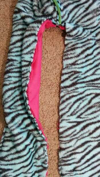 Dejé los fondos de los bolsillos abiertos, tan cosido abajo las dos piezas delanteras y ahora fijados por los dos lados traseros, listos para coser. ¿Ver claramente cómo la piel está escondida? Bueno, más o menos. Después de esta costura, se tapa la salida de la derecha de toda pieza para comprobar si algo salió mal y arreglarlo. Ahora, dale la vuelta adentro hacia fuera, es el momento de añadir la hechicería!