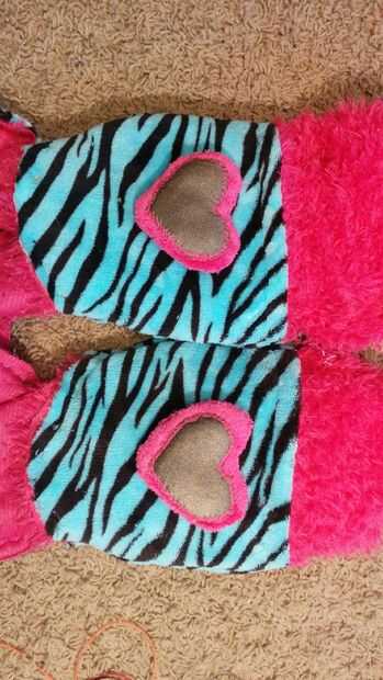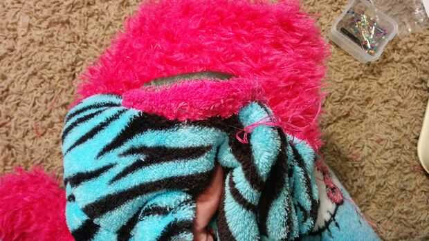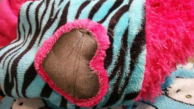 Sólo lo bolsillos lado derecho hacia fuera, para agregar las patas y el hilo conductor que las tire. Coser los cojines de la pata por sí mismo pegando un montón de veces con la aguja. Bueno, tal vez no lo hacen. Mantenga o pin pad la pata en el lugar correcto y no una puntada escalera. Al menos, eso es lo que me llamo ella. La imagen de la hermosa pintura arriba es visual. Un nudo y pegarla en un lugar que no lo ves. Ahora pega la aguja a un lado, grab sobre y 1/8 de pulgada de tela y tire la aguja vuelve a salir. Ahora vaya a través a otro material y hacer lo mismo. Básicamente es una puntada de funcionamiento detallada. Puntada puntadas alrededor de 6, tire de ella agradable y apretado y luego doble una puntada para mantener ese sistema. Seguir todo el camino alrededor. Se trata de cómo se unen los cojines de la pata, dedos de los pies y cuernos. Les cose en el ahora.