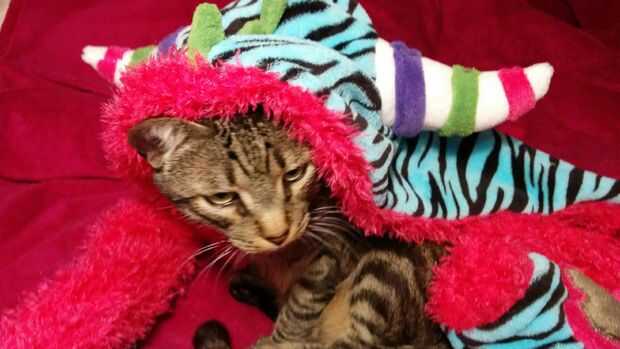 Cazar a gato para una foto op y soborno con golosinas darles llevar capucha. La única que tendría algo que ver con él (de lo contrario que los controles nocturnos de Lilybug), es Bagel, que ya no le importa, como hay delicias para ser tenido.