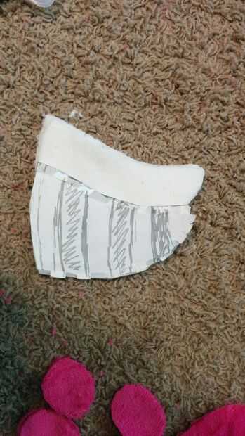 Elaborar algunos cuernos, teniendo en cuenta la distancia de lado a lado (no necesitas ninguna demandas para meter ojo de alguien hacia fuera porque sus cuernos eran demasiados!). Había acortado mi dibujo original y añade grosor extra para tener en cuenta para rellenar el cuerno para convertirlo en tres dimensiones. Para comprobar, que corté dos de papel, corte y plegada cada-otra dirección el papel todo el camino alrededor de los bordes que se cose y apareció abren el cuerno de papel. ¿Como la forma? Seguir adelante y trazar cuatro (2 frontales, 2 posteriores) y corte de la tela. Añadir rayas fantasiosos dibujo directamente en el patrón de cuerno, agregando espesor del cierre, elegir colores y corte porciones o ' pequeñas partes.