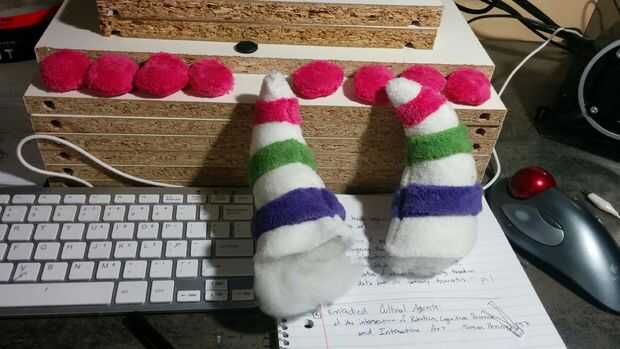 Coser, ver, coser, ver, etc. etc. etc. (6 o más episodios más adelante), final de la cosecha actual de coser a mano. He añadido un pequeño bit de relleno de la almohada (literalmente robado de una almohada), a cada dedo del pie y los cuernos.