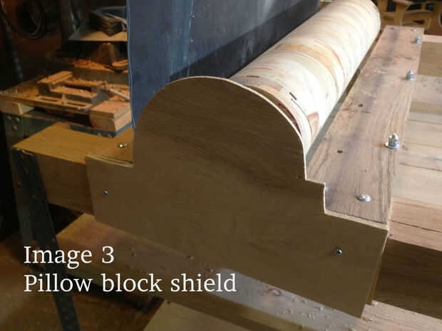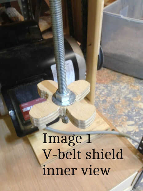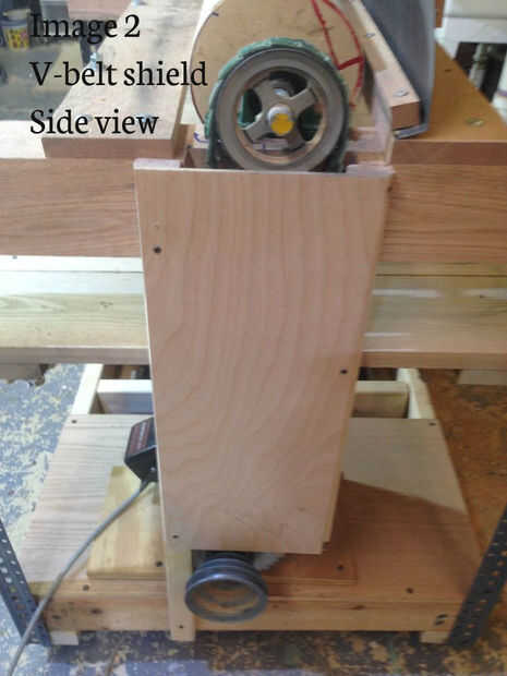 El mayor peligro para la seguridad del proyecto es conseguir algo atrapado en la correa y se tiró en una polea. Para mitigar esto, una pareja 1" amplia trozos de madera fueron utilizados para crear un marco de soporte de la cubierta superior a la cubierta inferior. Éstos eran agujeros y luego atornillados a las cubiertas superior e inferior de 1/2" más ancha que la anchura de la correa. Se cortó un pedazo de madera contrachapada de 1/4" para cubrir la correa de la polea del motor a la polea superior.
