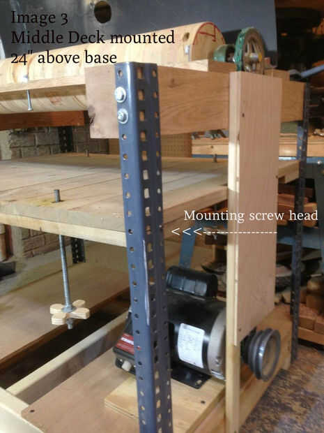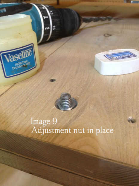 La primera foto de este paso es la parte superior de la cubierta y la segunda foto es mirando la parte inferior de la cubierta. La cubierta intermedia es donde la varilla roscada de 12" se utiliza para ajustar la altura de la cubierta de lijado.