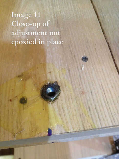 - Una vez todas las barras y las nueces, mezclar algunos 5 minutos (o cualquier tiempo de curado que desee utilizar) y cuidadosamente rellene el espacio alrededor de cada tuerca con epoxy y deje que se cure (imagen 10 y 11).