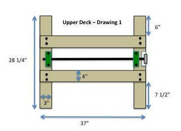 - Comenzar deslizando los bloques de almohadilla sobre el eje y posicionamiento todo el montaje en la cubierta superior apoyo como hiciste en el paso 4-10-representado en el dibujo 1