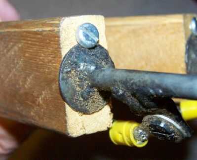 Una arandela plana en cada varilla de acero de la autógena. Inserte las varillas en las manijas. Taladro para tornillo de fijación en cada mango. Este tornillo fija las barras por lo que no pueden desplazar o rotar desde la configuración de su ángulo.