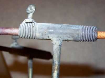 Perfore un agujero de 3/16 de pulgada en el lado de los pezones cerca del extremo inferior (como cuando la antorcha está en uso). Coloque una tuerca #8-32 sobre el agujero y soldarlo en su lugar. Hilos de rosca de la tuerca es probable que se distorsionen un poco durante la soldadura. Perseguir los hilos con un grifo de rosca #8-32. Atornille los tornillos en las tuercas.
