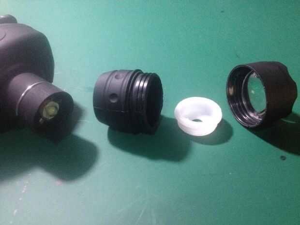 Tirando de la parte frontal de la antorcha del cuerpo va a liberar la cubierta del lente de la base de la antorcha.
