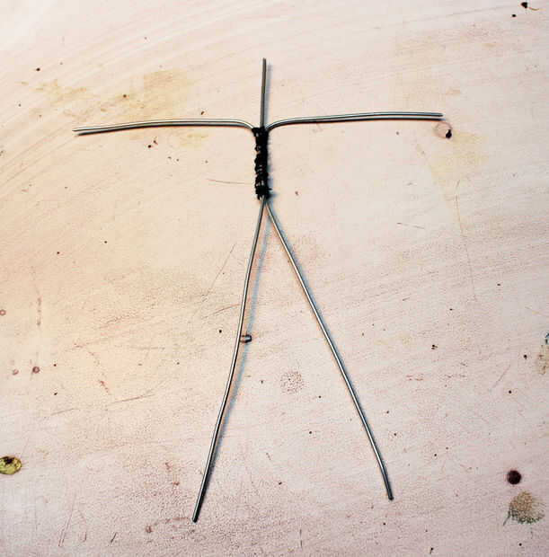 Tomar el alambre floral y comenzar a envolver 3/4 del camino hasta los cables más largos de hangar junto con el cuello en su lugar como se muestra. Asegúrese de que usted Envuelva apretadamente como sea posible. Esto puede ser un poco tuff en sus manos y puede usar guantes.