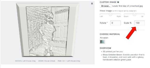 Tu imagen aparecerá ligeramente más corta que la superficie de los azulejos. Utilice la herramienta de % de escala para ajustar la imagen al tamaño deseado.