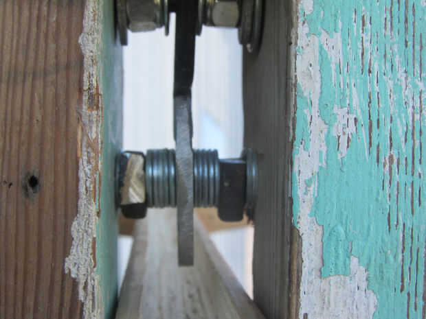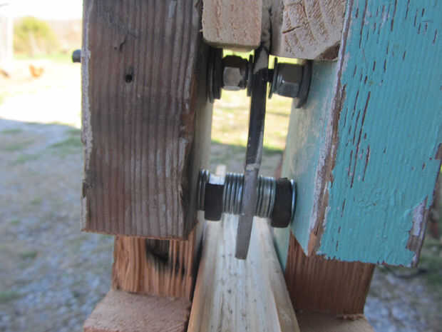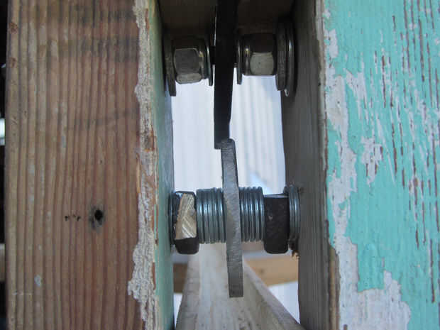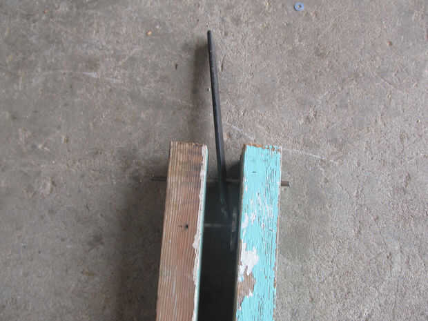 Después de que el volante es cómodo tienes que conseguir algo para mantenerlo todo junto. Utilicé dos 2x4s perforado unos agujeros poner dos alfileres en el y luego alineados mi palanca y rueda. también necesita un montón de arandelas para asegurarse de que el espacio mantiene igual.