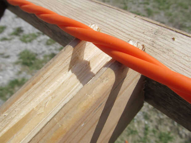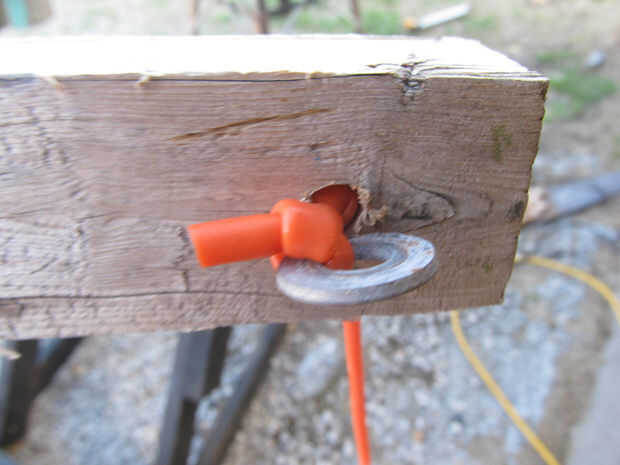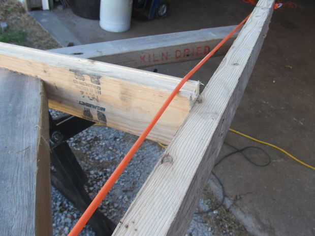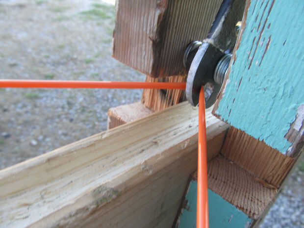 Al arco sólo había perforado con los agujeros en el extremo de la proa y funcionó mi tubo a través de ellos. y tira de ellas bastante apretado el arco alrededor de 50 libras de presión por la tercera vez que encadenan.