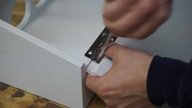 Montara la puerta con una bisagra de piano que tenía puesta alrededor pero puede usar cualquier bisagra que desea, no es necesario abarcar la apertura.