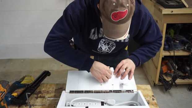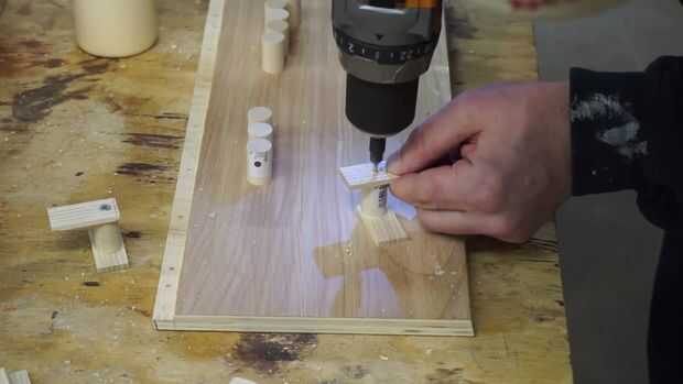 Para hacer el cable envuelve cortar dos piezas de espiga para cada dispositivo destinado a almacenar. Cortar la espiga 1" y corte algunas placas de montaje en 1" así. Montar el pasador a la Junta utilizando cola y tornillos de cabeza avellanada. Un lado de la envoltura de cable que tienen una tapa inmóvil y desea el otro lado de la envoltura para poder girar de forma que no necesita para arriba-envolver el cable cada vez que es necesario utilizar el dispositivo.