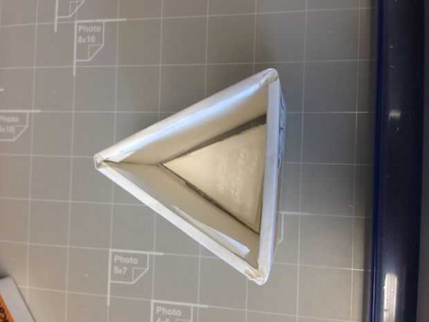 Tomar su bandera exterior acabado y colocar sobre un trozo de espuma. Marca un triángulo en la base de la espuma con el interior de la bandera como plantilla y corte (Foto 2). Asegúrese de que es una fricción en el interior de la bandera.