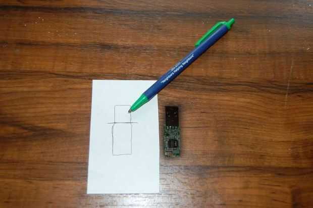 Coloque su platina de disco USB en el papel y trazar con el lápiz. Hacer a través de una línea en el trazo, exactamente donde se detiene el conector y el circuito comienza. Este seguimiento se utilizará como una guía para contar la cantidad de la tarjeta necesita cortar para la delantera y trasera diseños de la impulsión del USB.