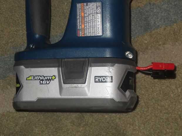 También se puede ver la pila instalada en mi vacío de Ryobi. Se puede ver que el conector adicional no causa obstrucciones. La batería todavía caben en cualquier herramienta Ryobi One +, así como todos sus cargadores.