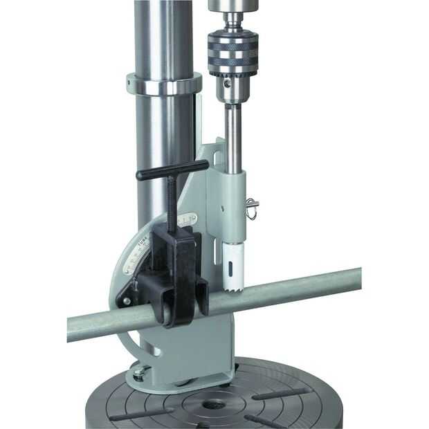 C. Si usted también tiene fresadora, poner el tubo en un bloque, montar el tubo en el ángulo deseado en la prensa, encontrar el centro, realizar la alimentación automática y sacar su palo selfie!