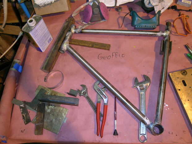 Ciclos de Jack Taylor no utilizan un accesorio de marco. Solía haber un vídeo donde muestran dos de la Chincha trabajando juntos, y hablando de tirar y por qué no utiliza un accesorio y doblar dos hojas de la horquilla a la vez y mira abajo el marco en una ventana mirando para asegurarse de que el tubo está en el mismo plano que el tubo del asiento y no me malinterpreten yo creo que los accesorios son grandes , usar un accesorio para virar cadena permanece, otro accesorio para los principales tubos cuando materiales requieren purga de nuevo, pero no necesariamente mantienen la estructura directamente durante la soldadura y marcos son generalmente extraídos accesorio de todos modos después de virar para que la soldadura puede ser preformado más uniformemente y así reducir la tira y luego marcos más ir a las tablas de alineación o simplemente salen a la puerta torcida. Pero puedo ver la lógica detrás de una bicicleta de carrera torcida, para la gente a menudo no saben sus marcos están fuera de la alineación debido a nunca han montado rectos bicicletas con las ruedas coplanares. Caídas verticales hacen una moto recta difícil de lograr y una vez más cuando sus carreras vas a miserable no importa cómo recta su bicicleta y su agarrada a la barra independientemente y además de alineación sintonía fina toma un asiento trasero para ahorro de peso, o lo que sea. Todos Im es a través de una bicicleta puede sufrir un dos sin la materia de derecho. Vaya a buscarlo!