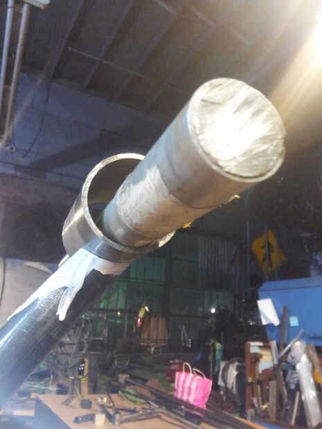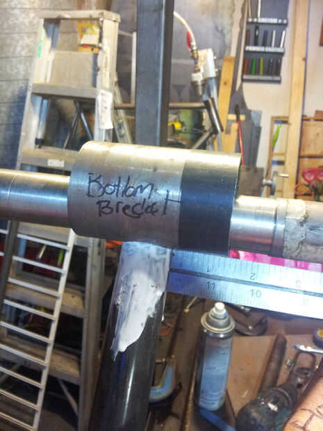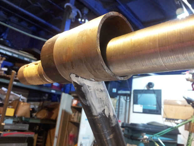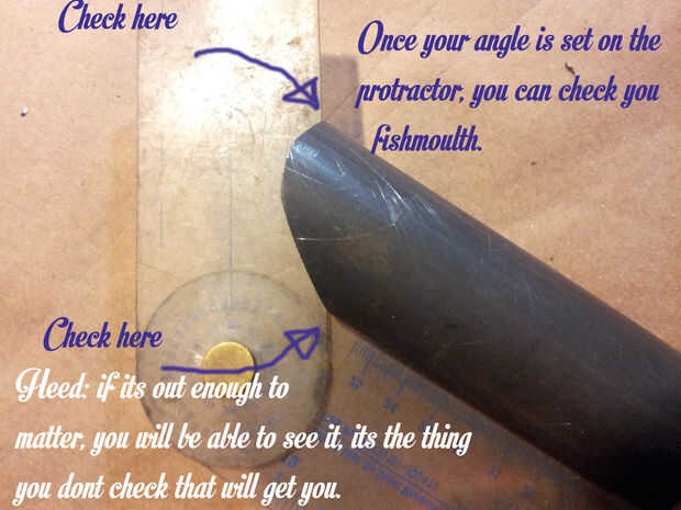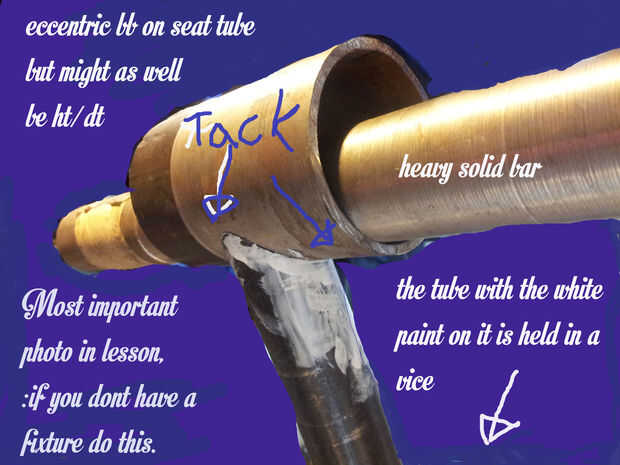 Me puse un poco de pintura blanco tubo más pequeño para hacer el cruce más visible. Una vez que vira en el frente y la parte posterior usted puede virar a un lado y luego el otro, aún podrá ver el inglete y si los dos tubos están todavía firmemente juntos bien, verificar contra el dibujo, soldar y soldar encima. No derrite sus tachuelas cuando hay que empezar en un nuevo lugar. Una tachuela de tig es 1-5 mm ancho, tachuelas de cobre amarillo tal vez 5-12 mm a través de. También Recuerde que si su Mitre fue un poco, es necesario virar el lado largo de la Mitra primero.