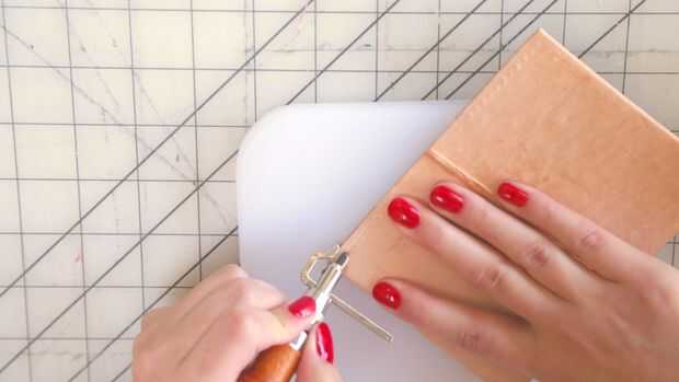 Moje el cuero y dejarlo volver casi seco y luego la línea hasta los cinceles con los agujeros y punch.