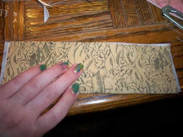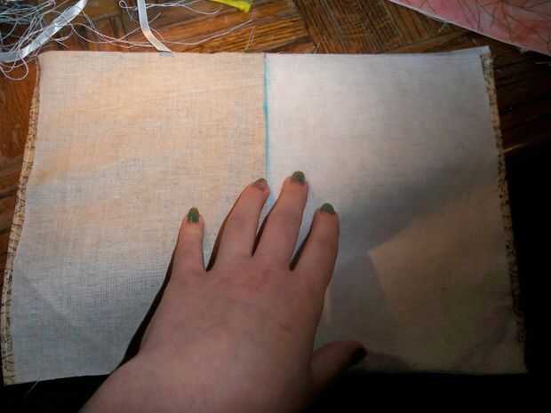 -Doblar la tela por la mitad por lo que se oculta el interior del paño. Puede que desee prender esto por lo que llevará a cabo.