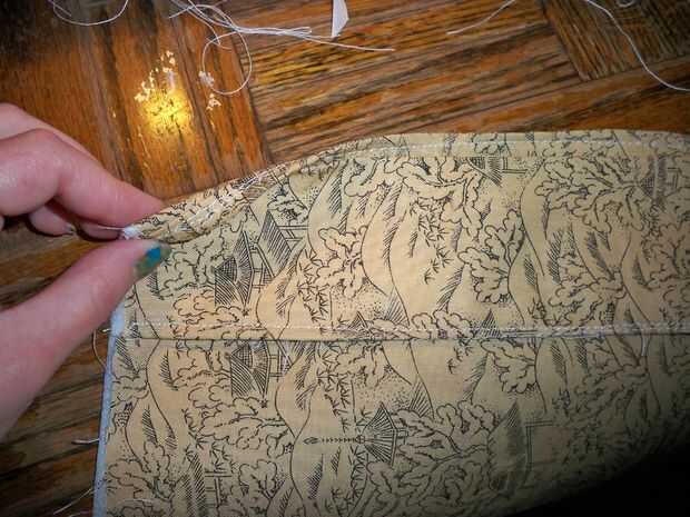 Tomar la pieza que era el pasador 5 x 8, en la línea que marcó y coser juntos.