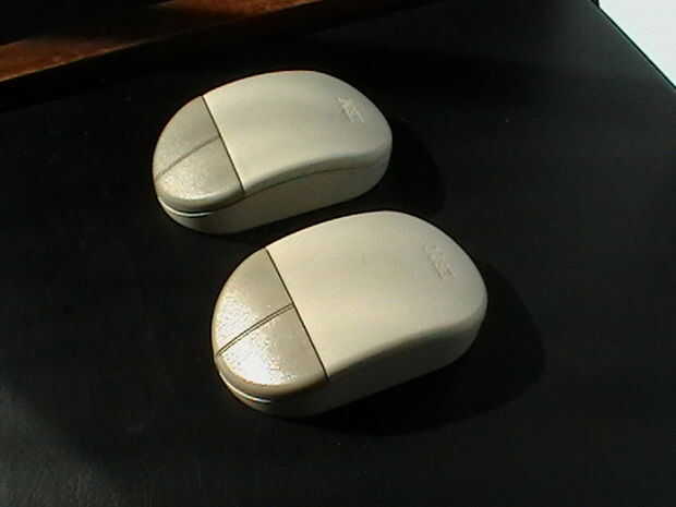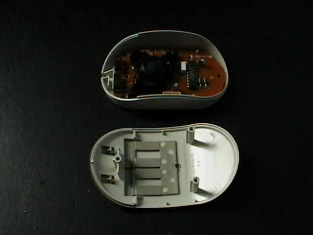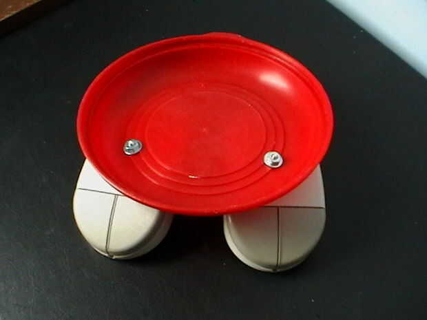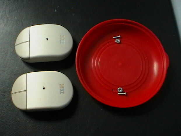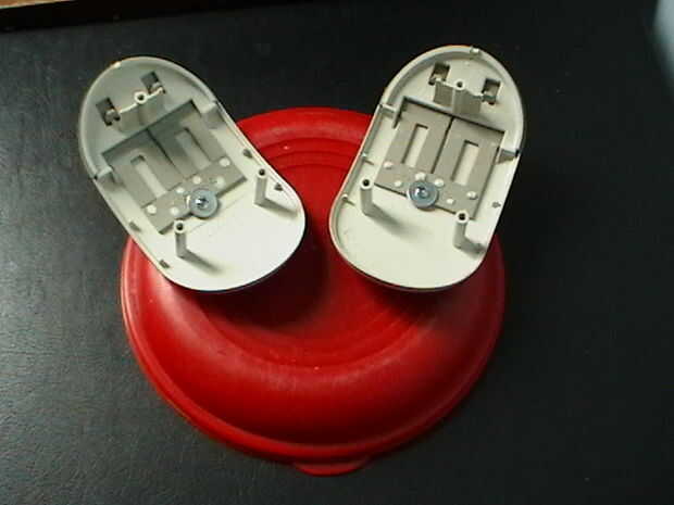 Perforar la parte superior de los ratones y hacer dos agujeros en la tapa del envase plástico. Conecte cada ratón a la tapa con tornillos y tuercas.