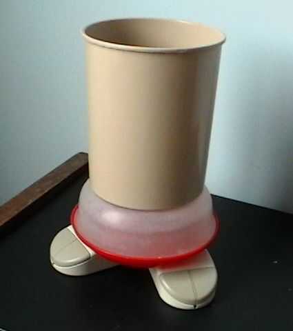 Perforar el centro de la can y el contenedor. Pegar ambas bases y poner juntos. Entonces introduzca la intro de tornillo ambos orificios, para fortalecer.