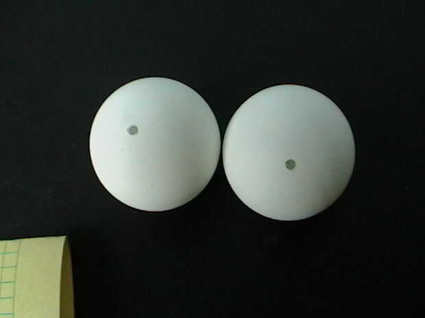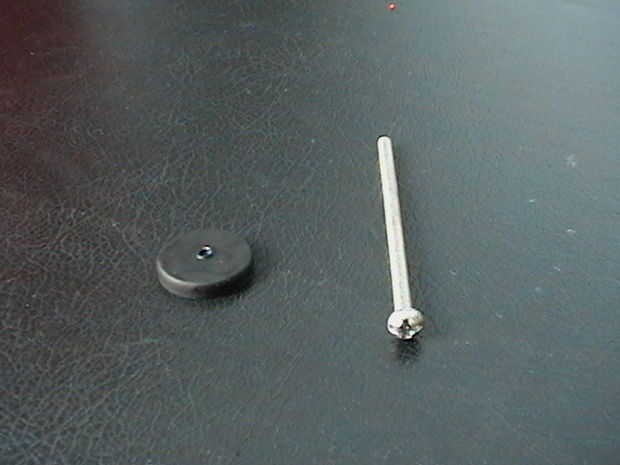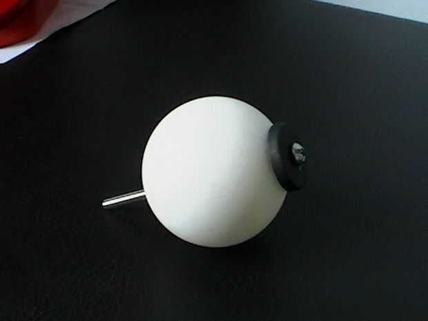 Perforar cada bola de pin-pong, polo a Polo. A continuación, inserte los tornillos (con los discos negros).