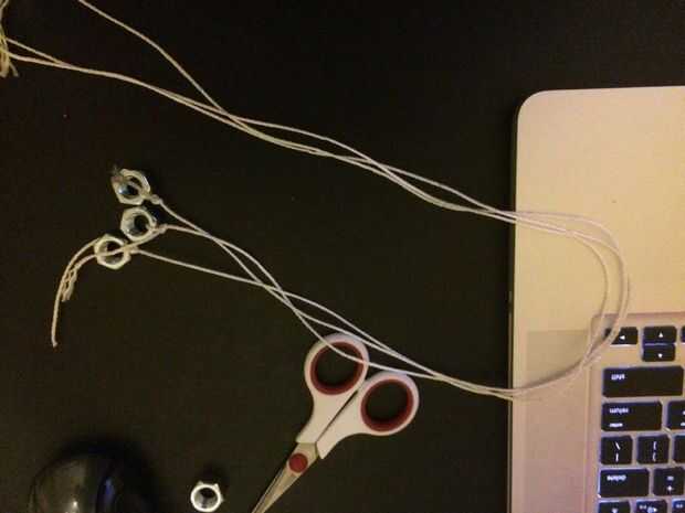 Sin embargo, en este punto corte la longitud de la cuerda con mucha holgura, porque usted puede siempre cortar luego. Y hacerlo para todos los pesos.