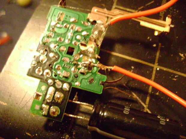 Usted necesitará quitar el condensador grande y soldar los cables a la Junta que solía ser.