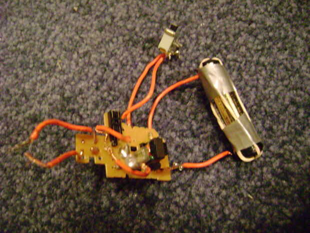 A continuación, habrá un lugar en el tablero donde pulsas dos cables juntos para cargar el condensador principal que extrajo; de todo el mundo será diferente. Tienes que soldar un cable a cada uno de los conductores y cables al conmutador.