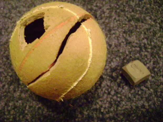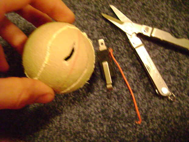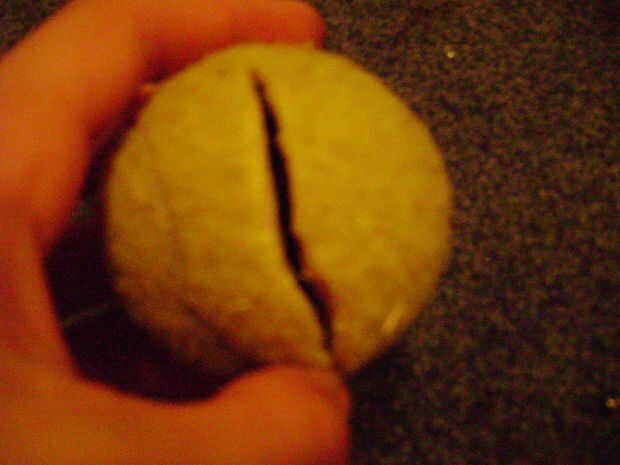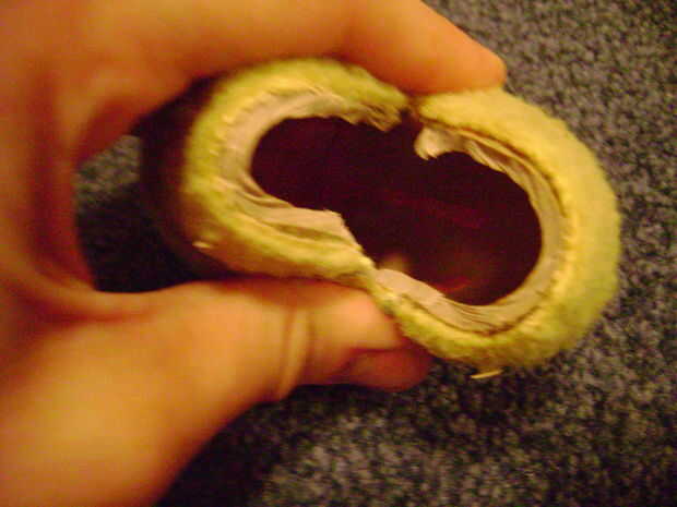 Hacer un corte grande en la pelota de tenis y oprima Abrir. Lo furry en mina empezaron a llegar, así que timen.