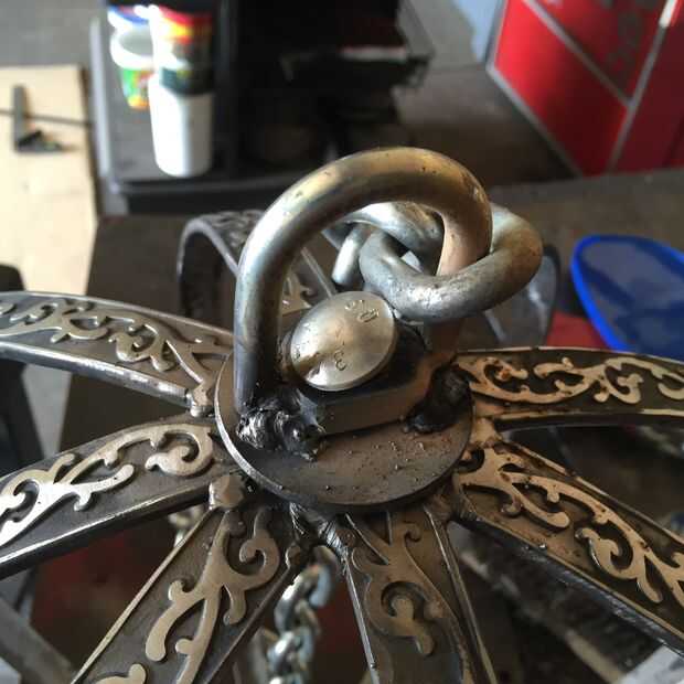 . Entonces suelda con autógena el perno de u sobre la parte superior del centro de la lavadora. El grillo está conectado ahora