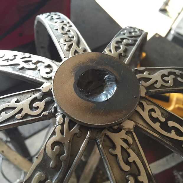 Tomando un rodamiento de bolas más grande, soldar en los centros de las arandelas.
