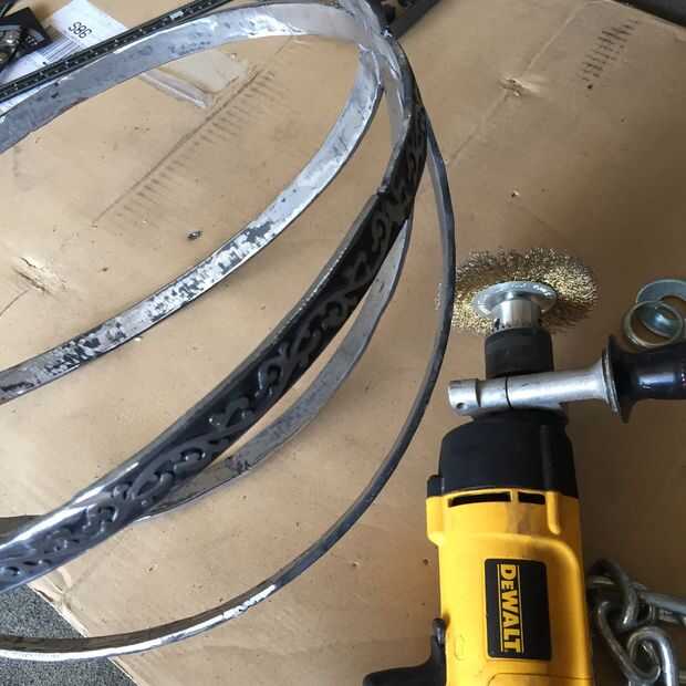 Con la rueda del alambre Taladro disco amoladora y disco de la aleta, limpiar el metal, limpiar los bordes, y la soldadura marcas y salpicaduras.