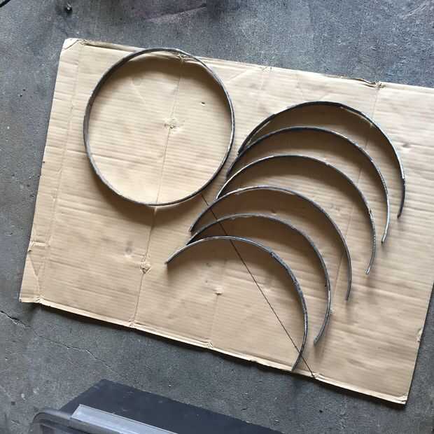 Uso de las marcas que pones en los anillos en el paso anterior como guía, corte 3 de los anillos en la mitad. Dejando un anillo completo.