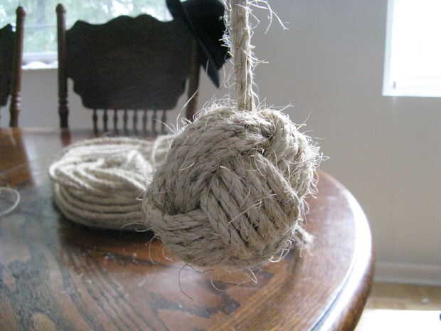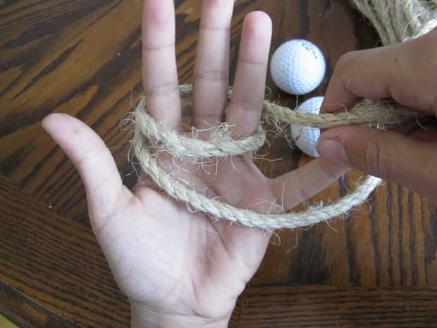 Para hacer puños de mono necesita cuerda, te recomiendo usar sobre 3/8" cuerda y tener cerca de 25 pies para este proyecto. Una de las cosas molestas que pueden suceder cuando usted está haciendo puño del mono, es cuando estás a punto de terminar, cuando te quedas sin cuerda. Cuando usted apriete el puño del mono, va hasta el final de la cuerda, por lo que no es un problema si el puño del mono suelto no es en la punta de la cuerda. Utilicé la cuerda del sisal porque me gusta la apariencia natural. Usted también necesitará tres pesos, si usted quiere ser primitivo, puede utilizar dos piedras del tamaño de una pelota de golf y uno más pequeño y más ligero peso piedra. Vivo en la Florida, la tierra no hay rocas, por lo que he usado pelotas de golf. Usé dos pelotas de golf del mismo peso y un peso más ligero, pelota de golf de práctica.
