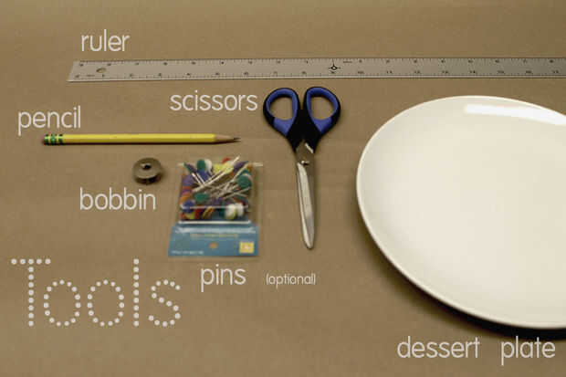 1 cremallera, Elegí una cremallera estándar de 6 pulgadas, puede usted elegir más grandes o más pequeñas, siempre y cuando no sea más de la mitad la circunferencia de la plantilla de círculo elegido. (le calculamos más adelante).