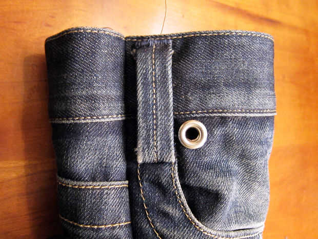 Corte un pequeño agujero en su capa exterior y un martillo en un ojal grande.  Debe ser aproximadamente 1.5" abajo de la parte superior de la bolsa.  Sólo será a través de la cáscara externa.
