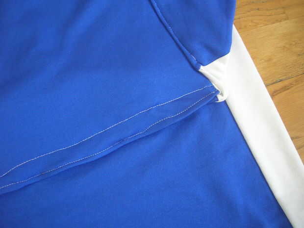 Ahora tienes que coser una línea justo por encima de la línea de costura en la parte superior de la camiseta.