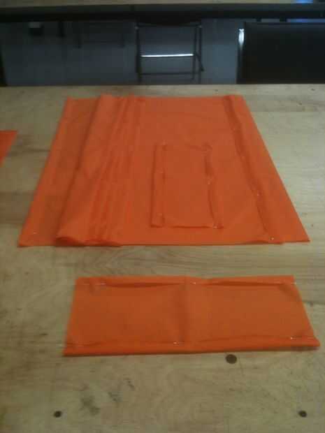 Todos los extremos de la tela el dobladillo, y luego volvemos a la solapa, aquí pliegue el dobladillo sobre sí mismo y dobladillo otra vez. Sin embargo, usted puede dar usted mismo un poco de descanso aquí y dobladillo a la anchura del material de cierre velcro que va a utilizar. Si desea un borde limpio en su interior los bordes, ir adelante y doble dobladillo ésos también. Hace la bolsa más pequeña sin embargo...